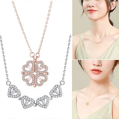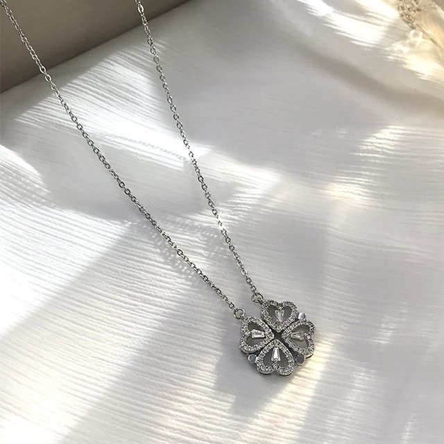 하트 네잎클로버 자기흡입목걸이